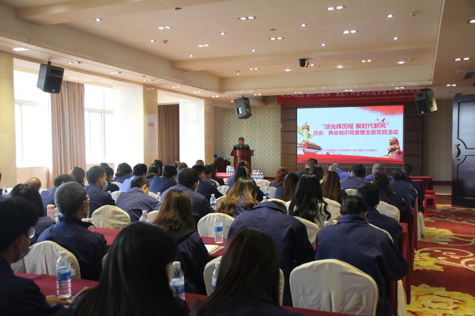 4月25日下午,中江水司組織開展“頌光輝歷程,展時代新風”黨史、兩會知識競賽暨主題黨日活動。公司90余名黨員干部職工參加了此次活動。