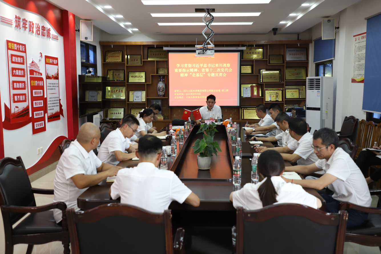 為堅(jiān)持以習(xí)近平新時(shí)代中國(guó)特色社會(huì)主義思想為指導(dǎo),貫徹落實(shí)習(xí)近平總書(shū)記對(duì)四川工作系列重要指示精神,根據(jù)川投水務(wù)集團(tuán)黨委《關(guān)于認(rèn)真做好學(xué)習(xí)貫徹習(xí)近平總書(shū)記來(lái)川視察重要指示精神和省第十二次黨代會(huì)精神“走基層”專(zhuān)題宣講的通知》文件要求,8月23日下午,川投水務(wù)集團(tuán)副總經(jīng)理譚衛(wèi)鵬一行赴榮縣水司開(kāi)展學(xué)習(xí)貫徹習(xí)近平總書(shū)記來(lái)川視察重要指示精神暨省第十二次黨代會(huì)精神“走基層”專(zhuān)題宣講活動(dòng),榮縣水司領(lǐng)導(dǎo)班子成員、黨員干部參加了活動(dòng)。