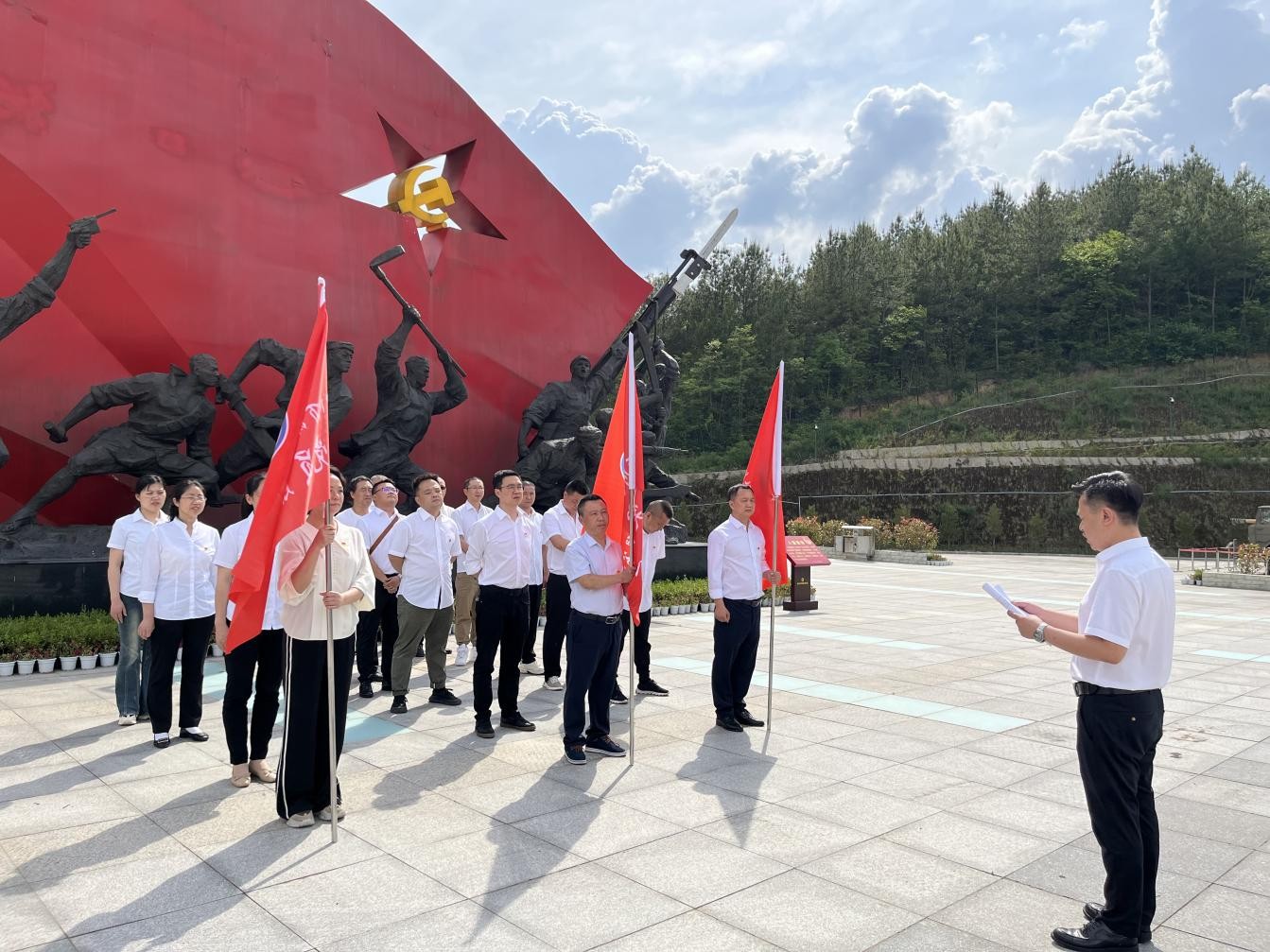 為充分發(fā)揮黨建引領(lǐng)作用,引導(dǎo)黨員立足崗位提能力、強(qiáng)作風(fēng)、作貢獻(xiàn),推進(jìn)公司“五聚凝心、服務(wù)民生”“1+5+N”基層黨建特色品牌建設(shè),5月8日下午,萬源水司黨支部組織全體黨員在萬源市戰(zhàn)史陳列館舉行了“黨員先鋒隊(duì)”“黨員突擊隊(duì)”“黨員服務(wù)隊(duì)”授旗儀式,黨支部書記、執(zhí)行董事、總經(jīng)理李至彬主持儀式。