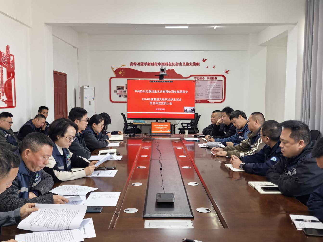 3月26日上午,川投水務(wù)萬源公司黨支部召開2024年度基層黨組織組織生活和民主評(píng)議黨員大會(huì),全體黨員參加會(huì)議,支部組織委員、副總經(jīng)理胡兵主持會(huì)議。