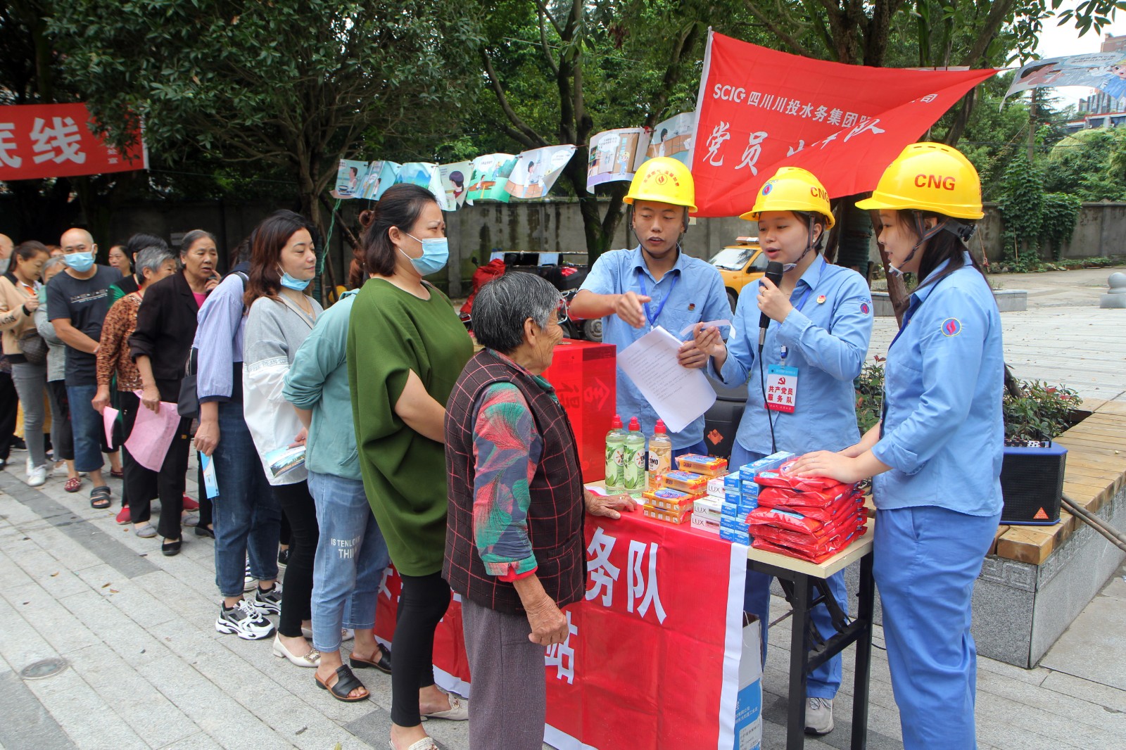 參觀結(jié)束后,參訓(xùn)人員一行來(lái)到花果山青家堰社區(qū),結(jié)合川投水務(wù)集團(tuán)黨史學(xué)習(xí)教育“我為群眾辦實(shí)事”實(shí)踐活動(dòng),為社區(qū)老百姓開(kāi)展了黨史知識(shí)、燃?xì)獍踩麄骱陀歇?jiǎng)知識(shí)問(wèn)答,切實(shí)將黨史學(xué)習(xí)教育成果轉(zhuǎn)換為“我為群眾辦實(shí)事”的實(shí)際行動(dòng)。