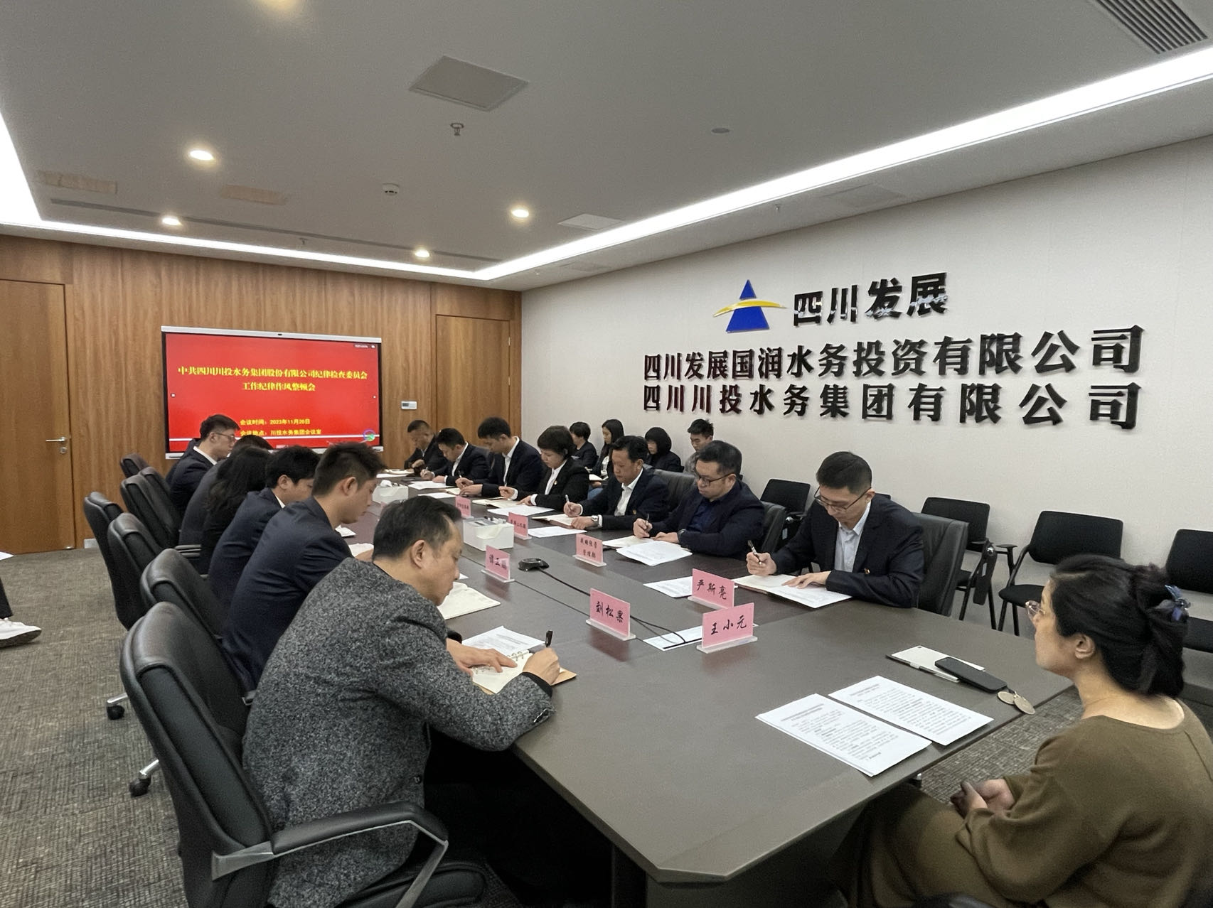 為進(jìn)一步嚴(yán)明全體干部職工工作紀(jì)律,加強(qiáng)思想、作風(fēng)、紀(jì)律建設(shè),樹立干事創(chuàng)業(yè)新氣象、新風(fēng)貌,聚力沖刺4季度,不斷推進(jìn)公司事業(yè)高質(zhì)量發(fā)展,11月20日,川投水務(wù)紀(jì)委組織召開2023年度紀(jì)律作風(fēng)整頓工作會(huì),會(huì)議由公司黨委委員、副總經(jīng)理嚴(yán)斯亮主持,公司黨委書記、執(zhí)行董事、總經(jīng)理王小元作重要講話。公司全體中層管理人員參加會(huì)議。