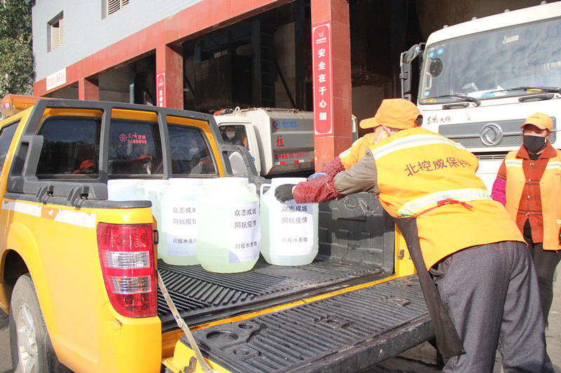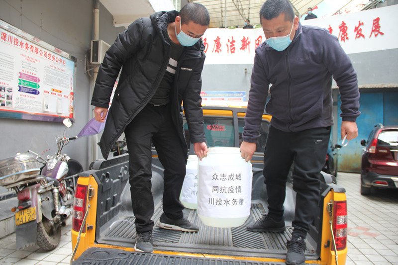 2020年2月8日,本是中國傳統(tǒng)元宵佳節(jié),萬源市城區(qū)的街道卻因新型冠狀病毒感染的肺炎疫情而顯得格外冷清。上午10時,一輛黃色工程車緩緩?fù)T谌f源市城南垃圾中轉(zhuǎn)站門口,也給街道增添了一抹亮色,車上載著10只白色塑料大桶,桶外張貼“眾志成城 同抗疫情 川投水務(wù)贈”字樣,桶內(nèi)裝著次氯酸鈉液體,每桶50斤。這是川投水務(wù)萬源水司向萬源市政府相關(guān)部門捐贈的第三批消毒藥劑,主要用于城市公共場所環(huán)衛(wèi)消毒。