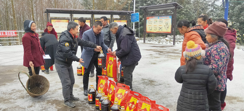 12月30日上午9點,李至彬副部長來到海拔1500多米的和平村村委會,冒雪向十多名困難群眾送上米、油和慰問金。李副部長向鄉(xiāng)親們表示,今天自己受川投水務黨委之托來看望大家,希望大家能夠在黨和國家的精準扶貧政策下,努力發(fā)展生產(chǎn),早日致富奔康,并祝愿鄉(xiāng)親們在新的一年里,身體健康,日子越過越紅火。困難群眾劉燦珍由于腿腳殘疾,行走不便,李副部長踏著雪上門慰問,詳細詢問了家庭生活情況,并送上了米、油及慰問金。