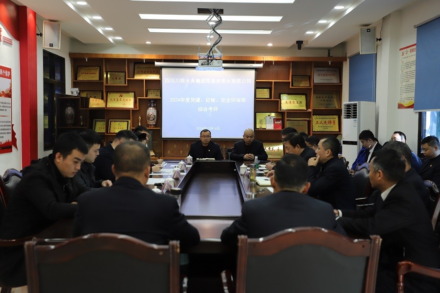 12月16日上午,川投水務(wù)集團(tuán)黨委委員、副總經(jīng)理唐韜率川投水務(wù)第二考核組對(duì)榮縣公司開(kāi)展2024年度黨建、紀(jì)檢、安全環(huán)保等綜合考評(píng)工作。榮縣公司黨支部書記、執(zhí)行董事、總經(jīng)理龔慶及副總經(jīng)理趙勇、中層管理干部、職工代表共計(jì)24人參加會(huì)議。
