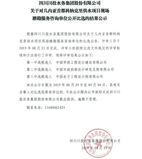 上一條:四川川投水務(wù)集團(tuán)股份有限公司 關(guān)于幾內(nèi)亞首都科納克里供水項(xiàng)目現(xiàn)場(chǎng)踏勘服務(wù)咨詢單位比選公告