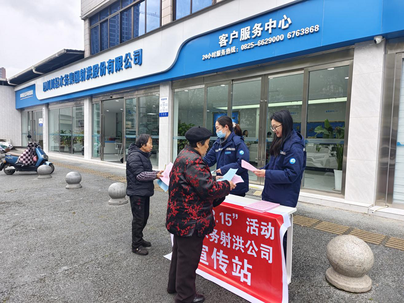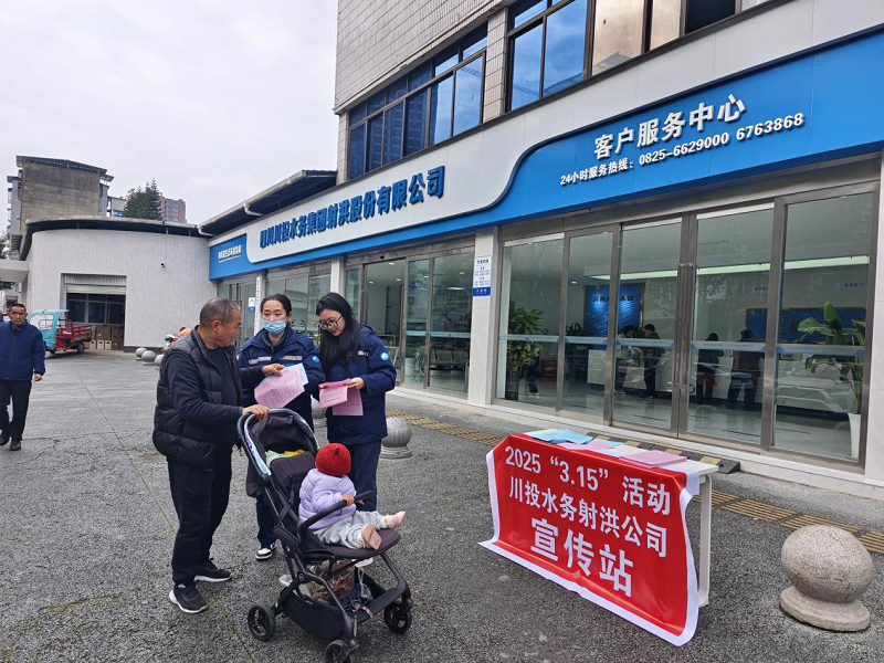 3月15日是國(guó)際消費(fèi)者權(quán)益日,為了共建誠(chéng)信社會(huì),進(jìn)一步提升公司服務(wù)水平和市民滿(mǎn)意度,川投水務(wù)射洪公司積極開(kāi)展了以“保障水質(zhì)安全、優(yōu)化供水服務(wù)”的宣傳活動(dòng)。