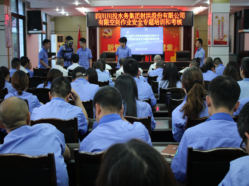 為貫徹落實(shí)《四川省有限空間作業(yè)安全管理規(guī)定》等法規(guī)要求,提升員工有限空間作業(yè)安全意識(shí)和應(yīng)急處置能力,預(yù)防作業(yè)過(guò)程中窒息、缺氧等事故的發(fā)生,川投水務(wù)射洪公司于2025年5月9日開(kāi)展有限空間作業(yè)安全專(zhuān)題培訓(xùn)和考核。公司領(lǐng)導(dǎo)班子、各部門(mén)負(fù)責(zé)人、員工現(xiàn)場(chǎng)共計(jì)72人參加。