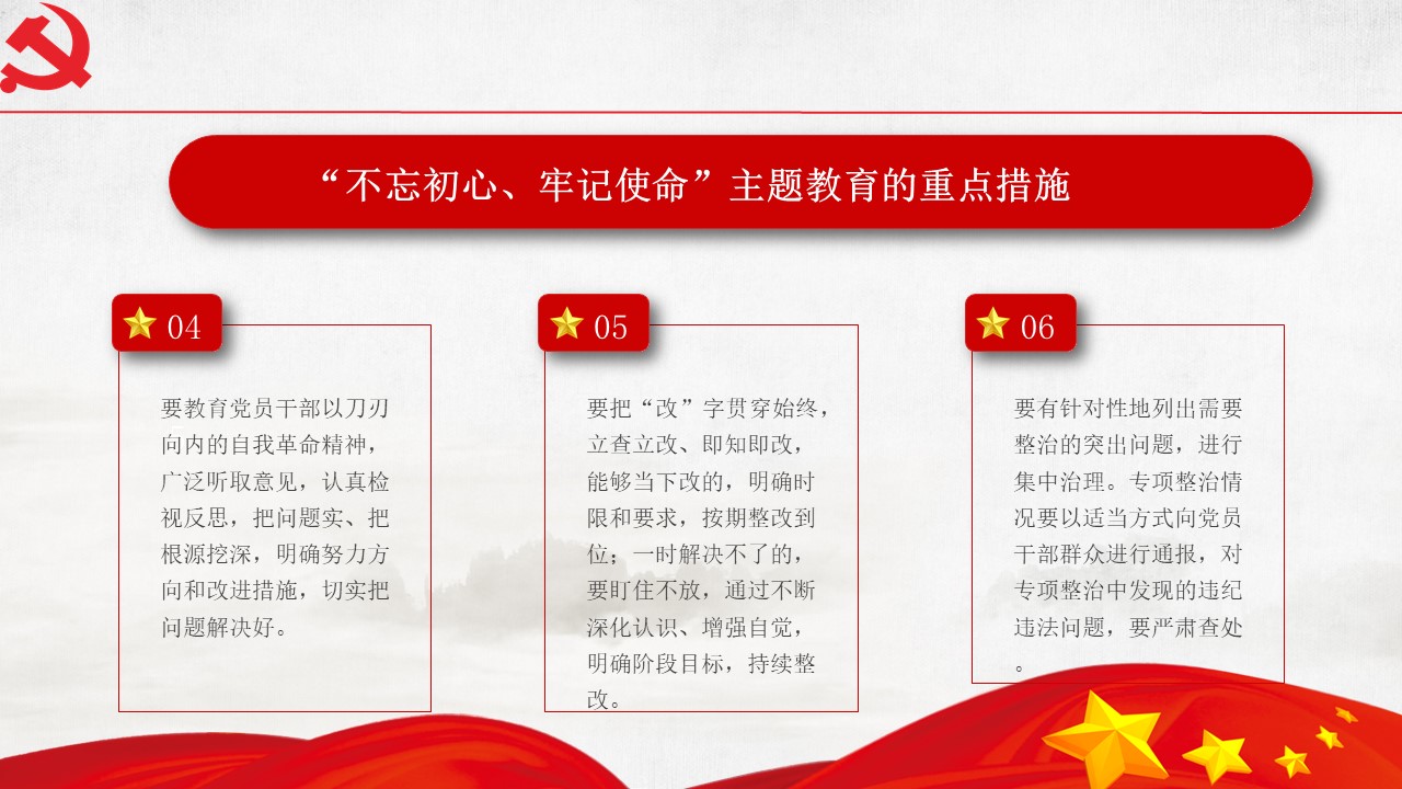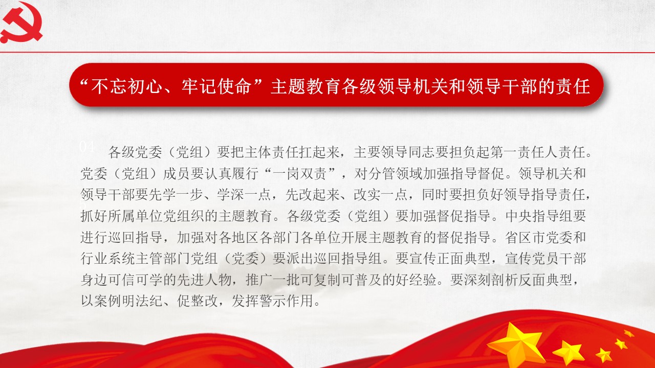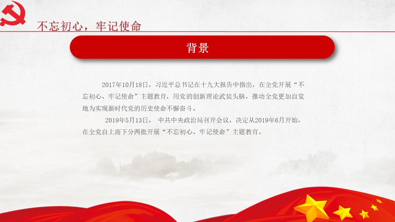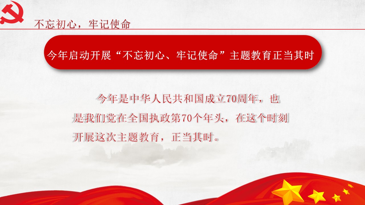 5月31日“不忘初心、牢記使命”主題教育工作會(huì)議31日在北京召開(kāi)。中共中央總書(shū)記、國(guó)家主席、中央軍委主席習(xí)近平出席會(huì)議并發(fā)表重要講話。他強(qiáng)調(diào),為中國(guó)人民謀幸福,為中華民族謀復(fù)興,是中國(guó)共產(chǎn)黨人的初心和使命,是激勵(lì)一代代中國(guó)共產(chǎn)黨人前赴后繼、英勇奮斗的根本動(dòng)力。開(kāi)展“不忘初心、牢記使命”主題教育,要牢牢把握守初心、擔(dān)使命,找差距、抓落實(shí)的總要求,牢牢把握深入學(xué)習(xí)貫徹新時(shí)代中國(guó)特色社會(huì)主義思想、...